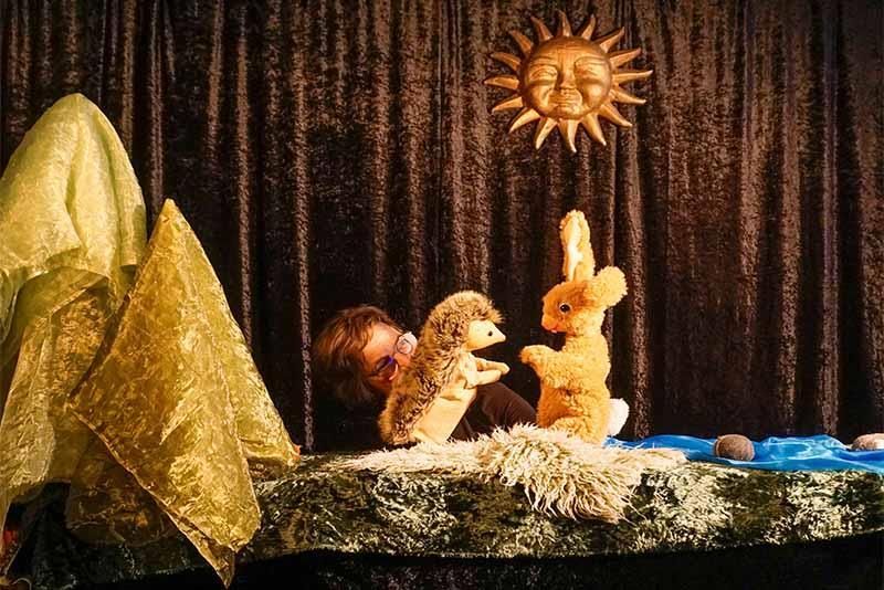 Für den Aufbau der 2,20 m breiten und 1,70 m tiefen Bühne planen Sie 1,5 - 2 Stunden Vorlaufzeit ein. Die Vorführung dauert ca. eine Stunde. Wird das Stück mit eigener Beleuchtung bestellt, d.h. mit Dimmer für Tag- und Nachtszenen, braucht es für den Raum Verdunkelungsmöglichkeit.